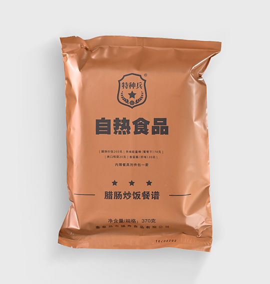 臘腸炒飯色澤光潤、肉質(zhì)緊實、有嚼勁。臘腸的香味,滲進米粒,咸中有那么一點絲絲的甜,美味可口。搭配葡萄干口味多維能量棒,爽口榨菜和鮮美香菇醬,每一口能吃出各種味道融合。高溫滅菌工藝,使其擁有常溫下超長的保質(zhì)期(24個月)。簡單易操作,既可以注水后完成一刻鐘自加熱,也可微波加熱,無需明火,滿足速食時代“既便捷又營養(yǎng)健康”的追求。袋內(nèi)附有餐盒餐具,不論是工作日的午餐,還是戶外運動、野外探險、應(yīng)急搶險等多種場合,都可以讓你美餐一頓。